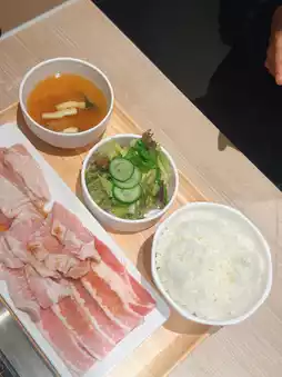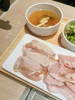 Spanish pork fillet, black hair pork neck, Fuji apple ground chicken 300g set 🥩 Pork fillet and pork neck rich in fat 🐷 Taste is elastic 😆 chicken with a slight apple flavor 🍎 fat and lean moderate ☺️ tender meat 🐓 eat refreshing 🤤 also have mini salad, white rice 300g, Japanese soup 🥣