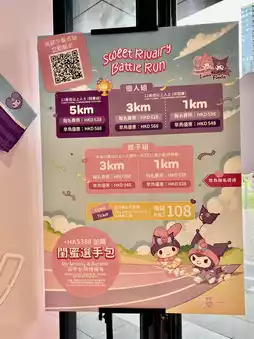 🏖️Environment/Facilities: To celebrate the "Sweet Rivalry Battle Run," the organizers have transformed the participant kit collection venue at AIRSIDE in Kai Tak into a themed photo hotspot. This allows participants and the public to immerse themselves in the event's vibrant atmosphere while collecting their kits. The entrance glass is adorned with colorful and lively "My Melody" and "Kuromi Luna Fiesta" themed designs, creating an adorable and energetic vibe.