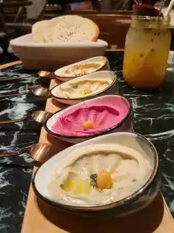 For appetizers, we ordered a hummus platter featuring four types of hummus. The texture was incredibly smooth, and I particularly loved the black truffle flavor—it was so fragrant ❤️. Paired with freshly baked pita bread, it was a delightful taste of Arabian cuisine.