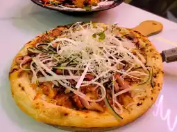 This pizza perfectly combines Chinese and Western flavors. The classic Beijing duck is paired with a crispy Italian pizza base, delivering rich sauce aromas and a smoky taste. Topped with fresh vegetables and special sauce, every bite is a delightful surprise!