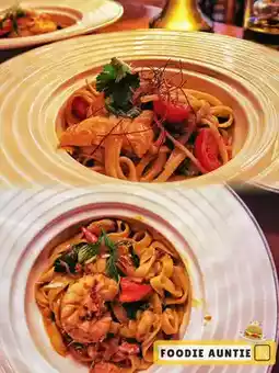 🦞 Another one is "Fresh Lobster Hand-Battered Spaghetti" is really full of ingredients! The lobster tongs are bouncy and fresh, and the wide noodles are dipped in rich lobster paste sauce. You can't miss it!