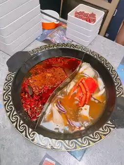 For the dual-flavor hotpot 🍲, we chose the Lobster Head Broth and the Beef Station's Signature Spicy Broth 🌶️. The lobster broth was rich yet not overly heavy, with a strong and fresh lobster flavor ☺️. The spicy broth had the perfect balance of numbing, aromatic, and spicy flavors. 👍🏻