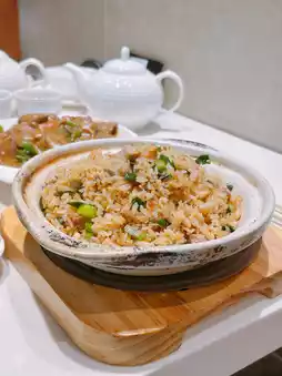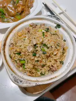 Fried Rice with Taro🍚 À la carte $128💰 - Made with taro, scallions, egg shreds🍳, and pork fat🐖. The taro is soft and creamy🤤, and the fried rice is aromatic and flavorful💯.