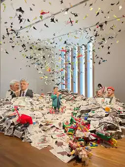 However, behind the smiles lies the artists' concern about the prevalence of consumer culture.