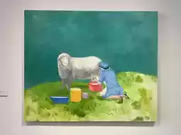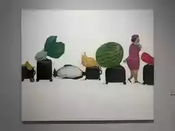 Next, I appreciated the series "Sister" by artist Duan Jianyu, who created a fictional flight attendant as the protagonist of her paintings. She is depicted dragging a long suitcase filled with crops and animals.