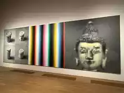 Initially, I was drawn to the colors of two paintings, but upon closer inspection, I noticed bottles of Coca-Cola. Besides the familiar "Coca-Cola" logo, the bottles also displayed phrases like "No Mouth, No Joy," "Cry Mouth, Cry Joy," and "Bitter Mouth, Bitter Joy."