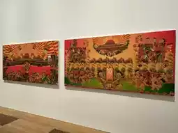 The first section of the exhibition features vibrant and colorful artworks, evoking a sense of joy.