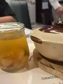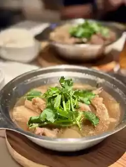First, I ordered **Braised Pork with Sea Coconut and Pear**. The broth was simmered for six hours, and the sweetness of the sea coconut and the fragrance of the pear were perfectly balanced. The savory flavor of the pork added a rich layer of flavor to the broth. This bowl of soup is not only delicious, but also has lung-moistening and cough-relieving properties, making it perfect for those seeking nourishment.