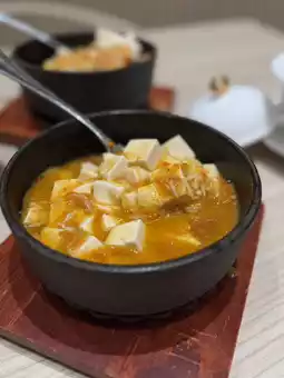 Stone pot crab powder tofu is served hot, stone pot squeaking sound makes me salivate🤤 Tofu is tender, absorbing crab powder freshness and sauce, melts in your mouth 🥰 Crab powder is rich, with onion spices to enhance the flavor, simple but layered ~ Stone pot insulation effect is quite good, eat until the end is still hot, like can also dip the pot into it, after eating really satisfied!