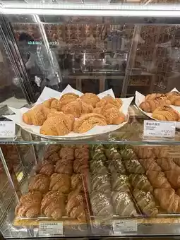 There are many choices of croissants. I tried the cheese croissants. The outer layer is crispy, full of milk flavour, and the taste is distinct. There are also chocolate, almond, chocolate hazelnut and other croissants options, each with coffee.