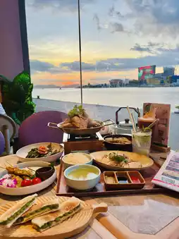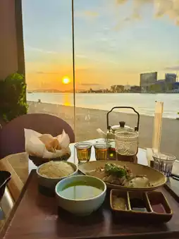 Choosing a window seat for dinner, the stunning view outside truly enhances the dining experience. As the sun sets over the picturesque harbor, every bite becomes even more precious. It's truly a visual and culinary delight! 📸✨