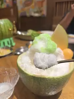 What's the best way to finish off your main course without dessert? Their **Melon Shaved Ice** is the perfect summer treat, refreshing and delicious, instantly cooling off the heat. It's a surefire favorite for kids!