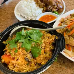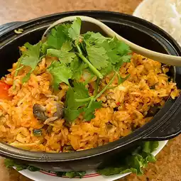 The Tom Yum Fried Rice is flavorful and aromatic, with a balanced sour and spicy taste.