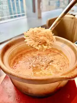The rich shrimp broth blends beautifully with the rice, giving each bite a taste of the ocean and a nostalgic home-cooked experience! 🐟