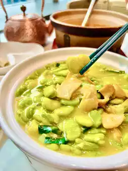 The tender and juicy conch meat paired with the fragrant chives and crispy broad beans is a perfect combination! Every bite is filled with the scent of spring, brightening your mood! 🌼