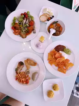 ✨ Guests can enjoy a variety of complimentary food and beverages, including fresh salads, hot dishes, and a selection of drinks from wines to signature cocktails. The lounge also serves specialty coffee and pastries for a quick refreshment.