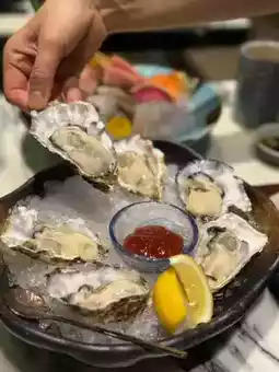 The Ako oysters are plump and sweet. 🦪 With a refreshing salty flavor, they're paired with cocktail sauce for a more delicious experience. ㊙️ A half-dozen are even 50% off! A great value!