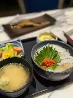 The tobiko skirt is seared to perfection, with a rich charcoal-grilled aroma. The fish skirt has a delicate and sweet texture 🐟 and pairs perfectly with the soft and chewy sushi rice. 😍 The kelp miso soup that comes with the set is light and sweet without being overly salty. The sesame garden salad is refreshing and light, and the Japanese omelet is smooth and generously topped with toppings. 🍱