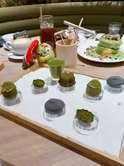 Must try their signature "withered mountain water"🍵✨ A tray on the table, with fine sand and wooden rake, you can draw your own patterns, like playing mini sand table meditation 🌊 Then slowly put six matcha desserts on ❤️ milk jelly, cake, madeleine, mousse, stone cookies and leaf cookies, each is exquisite and just right, bite into matcha flavor full, very healing💚