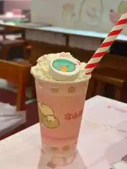Special white peach oolong milk tea π₯€ Single order $38 π° Surface cream, lizard penguin shaped cotton candy π§