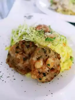 🍛 Handmade Pan-Fried Pork Patty x Crab Meat and Salted Egg Yolk Risotto: The handmade pork patty has a slightly bouncy texture, while the crab meat and salted egg yolk risotto is creamy and flavorful, offering a heartwarming and satisfying experience.