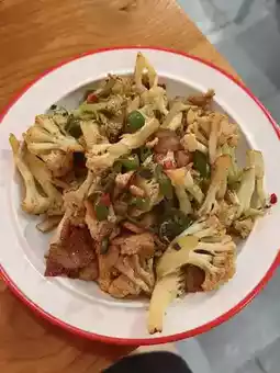 - Stir-fried Cauliflower 🥦: $78 HKD per order. The cauliflower is crispy and tender, stir-fried with pork belly 🐖, chili, and garlic 🔥, making it flavorful and appetizing 😋.