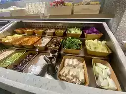 The restaurant is clean and bright, with ample seating for a comfortable stay. The food and drinks are neatly arranged and clearly labeled, making it a great place for solo dining, family gatherings, or gatherings with friends.