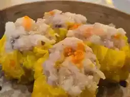 The siu-mai is big and surprising, and is garnished with mushrooms and crab seeds.