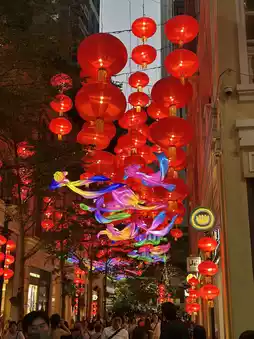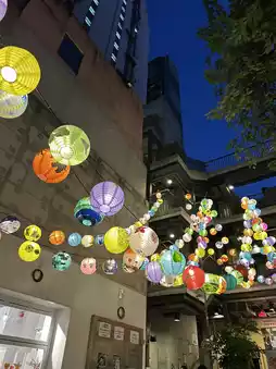 The whole street is hung with more than 800 traditional Chinese lanterns and goldfish lanterns. Once the lights are lit, the whole place instantly becomes a flowing river of light and shadow! Golden ginkgo leaves with red sea of lanterns, looking up at the warm light in the sky, old Cantonese songs playing in my ears, like walking into the retro Mid-Autumn Festival in Wong Kar-wai's movies