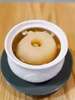 It's also good all year round. I ordered a cold one that day. Stew the whole pear over low heat. The essence of ice sugar, Sichuan mussels and pear blends in the stew pot. It is very healthy and thirst-quenching, very clearing heat and moisturizing the lungs 👍 makes people endlessly reminisce.