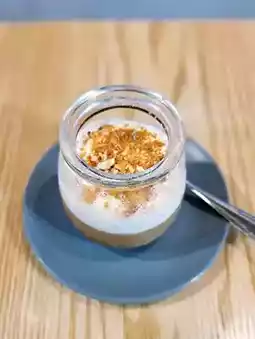 It tastes super fragrant coffee flavor ☕️ and with a little caramel flavor, with coconut milk taste smoother, a little biscuit crumbs on top taste more layered 👍
