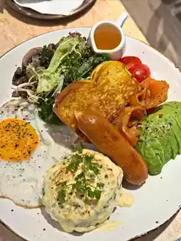 The bread is sweet, the sausage is crispy, and drizzled with syrup, even the thick-cut burger steak is not greasy at all.