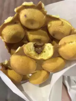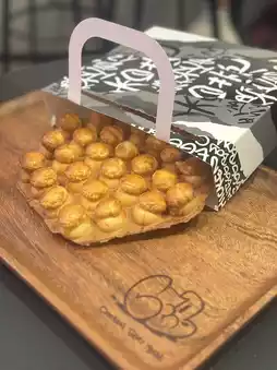 The pineapple bun egg waffles ($59) are presented in a unique paper bag. The crispy pineapple bun wrapper perfectly complements the egg waffle, creating a crunchy texture when you bite into it. What's special is that the egg waffles are hollow inside, giving them a lighter and crispier texture than usual.