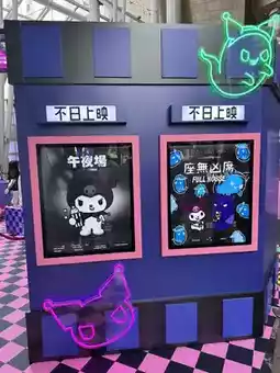 It is recommended to start from Exit E of Mong Kok MTR Station and go directly to Langham Place. Upon entering the mall, it is recommended to stroll through the Kuromi layouts on different floors of the mall, including the themed exhibition area and limited boutique, before going up to the theater front desk to see what limited peripherals are available. There are also featured photo spots such as Kuromi giant dolls, themed magazine walls and feature lighting.