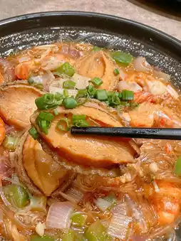 Abalone and shrimp vermicelli pot 🍲 The abalone is tender and chewy 🐚, the shrimp is fresh and sweet 🦐, and the vermicelli is smooth and delightful 😛