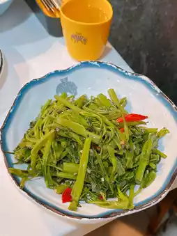 Thai-style Stir-fried Morning Glory 🥬 The morning glory is crisp 😆 with a savory, slightly spicy flavor 😛