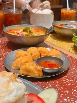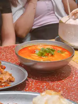 Thai tom yum soup 🥣 has sweet, sour, spicy 🌶️ and rich coconut milk fragrance 🥥 and various spice flavors 🌱