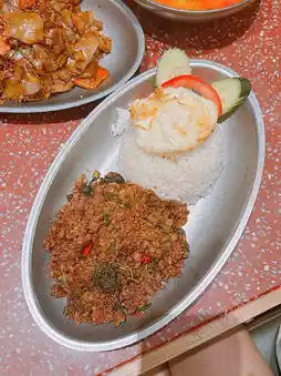 Thai Sun Egg and Leaf Fried Minced Pork Rice 🍚 Minced Meat Spicy Oil Fragrance 🐖 with a golden aroma 💨 Very appetizing 🤤