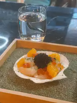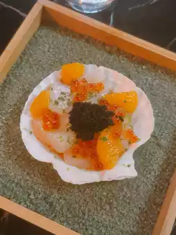 - Hokkaido Scallop Sashimi with Japanese Sesame Oil and Yuzu Vinegar 🐚: Thinly sliced scallops are fresh and sweet, paired with the slightly tangy yuzu vinegar and the aroma of sesame oil 😉.