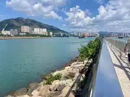 Today, we finally arrived at the Tuen Mun Promenade, known as the "Fantasy Bridge of Love," located in Tuen Mun Promenade Park in Hong Kong. Built along the shores of Butterfly Bay, the Tuen Mun Promenade is a mere 10-minute walk from the Tuen Mun Ferry Terminal. Not only do you enjoy stunning sea views, but you can also stroll along the beach, relax, and soak up the sun.