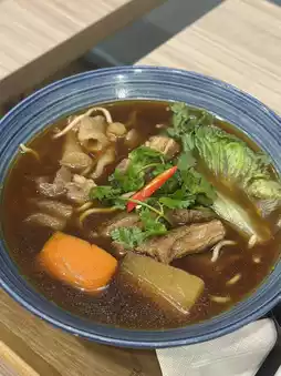You can choose your preferred soup base and noodle type. We opted for the braised beef soup, which was rich and flavorful. The beef brisket and tendon were well-seasoned and tender, with generous portions. The dish also included vegetables and radish, and the Taiwanese noodles had a pleasantly chewy texture.