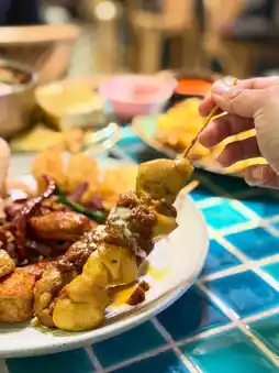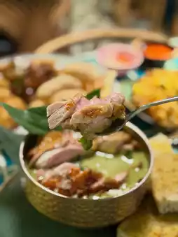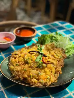 For spice lovers, the green curry roast chicken is a must-try! It's aromatic, spicy, and authentic 🌶️, paired with herb bread that is super appetizing 👍🏻. The appetizer platter was very generous in portion. I absolutely loved the crispy shrimp cakes, which were bouncy and flavorful, and the pork neck was delightfully chewy 😋. There were also plenty of shrimp cakes, satay chicken 🍗 with a strong coconut aroma 🤤, and the Thai-style fried oyster pancake was packed with ingredients 😍. It was loaded with fresh oysters, fried to a crispy perfection, and paired with a tangy and spicy sauce. Adding bean sprouts and lettuce balanced the richness, making it incredibly delicious 😋.