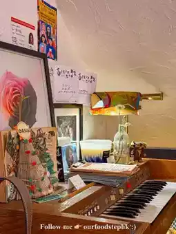 Every corner of this cafe is filled with interesting art and light works.