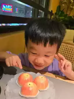 Highly recommend the premium beef tongue for $78. It's a generous portion, tender, and has a subtle beef flavor. Zhengzheng and Yueyue's favorite was the apple bun, which looks just like an apple and is filled with sweet apple filling. A plate of three costs only $28.