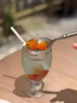 👉🏻 The drinks are very characteristic! The summer festival goldfish soda, persimmon syrup and purple sweet potato milk are all very igable, two cold drinks are sweet and sour, and goldfish candy is too cute😍 The milk is very thoughtful, Japanese feeling comes back!
