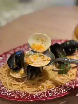 👉🏻 Yatai style garlic mussel pasta very large mussels very fresh and satisfying 🥰 full of butter and garlic too delicious 👍🏻