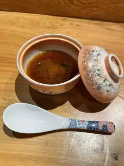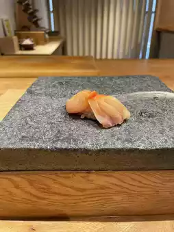 The chef slaps the red mussels, which shrink immediately. The mussels are crispy and bouncy, fresh and sweet, and have a lime flavor.