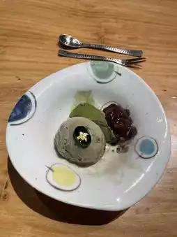 Hojicha ice cream and fern cake, no dessert can choose coffee or tea.