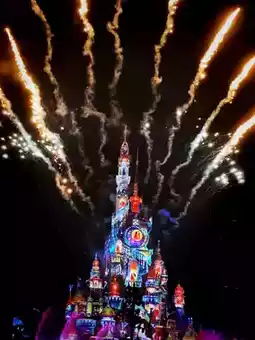 ๐ฐ Fireworks show at Disneyland Park in front of the castle at 8:30 PM and 9:00 PM, depending on the day. Check the app for the fireworks. The fireworks are amazing! They last about 20 minutes, so it's so satisfying and heartwarming.