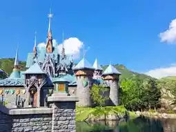 โ๏ธ ๐ช๐ผ๐ฟ๐น๐ฑ ๐ผ๐ณ ๐๐ฟ๐ผ๐๐ฒ๐ป: Disneyland's Disneyland themed zone. This one was my favorite. It was really well done. I loved the entrance. Super cool decor, a 1-minute roller coaster (named so quickly!), and a city atmosphere reminiscent of the movie Arendelle, right down to the frozen mountain.